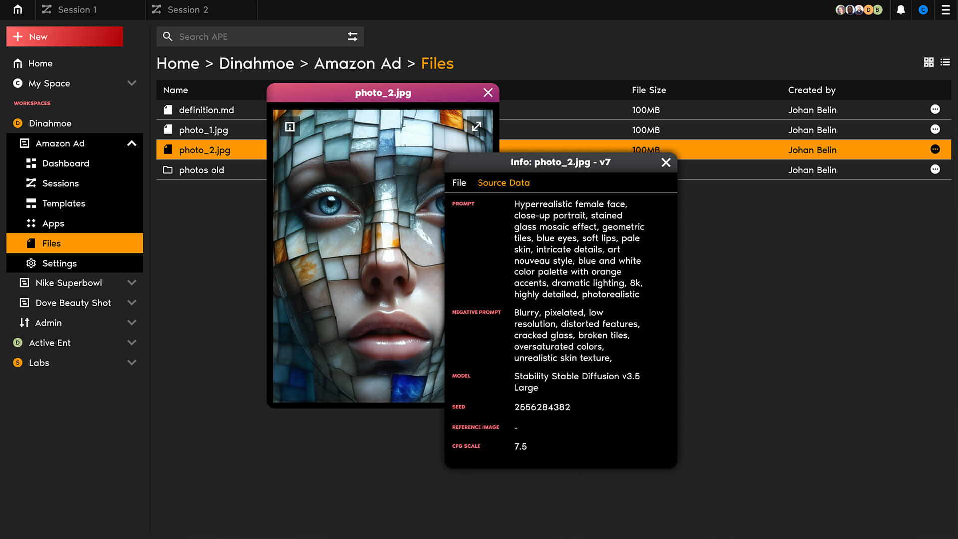 Seamless Asset Management. Traceable, reproducible, searchable.APE keeps track of all the content that is generated and makes sure that nothing is ever lost. Everything is stored automatically to the APE Drive together with versioning, and metadata about how it was created: source files, models, prompts, seed number etc. This means your team's best work isn't just searchable – it's replicable and improvable.