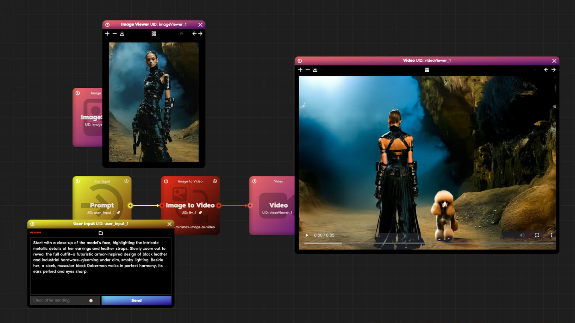 With APE you have access to all major GenAI models, types of content generation, and processing. From training custom models for specific characters and styles to sophisticated image manipulation, from interactive script writing to seamless client approvals. Design intricate prompts, upscale assets, mix audio tracks, and blend different AI capabilities into powerful creative workflows. No need to juggle multiple accounts, subscriptions and work processes.